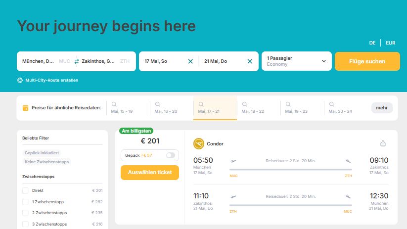 HIER KÖNNT IHR DEN FLUG BUCHEN